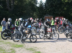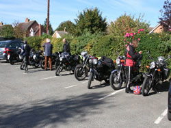 “Hardly Autumn, it still felt like Summer for the last run before Boxing Day. A beautiful day, perfect for riding, and 29 riders signed on at Kenilworth Rugby Club. Two vintage bikes, Derek Morris’ ‘28 Matchless and Frank Parker’s ‘29 Panther, one solitary pre war machine, Roland Robinson’s ‘34 Cammy Square Four Ariel, with all the remainder being a mix of British, Japanese, Italian and German post war machines.