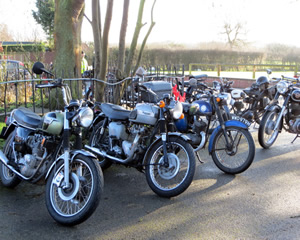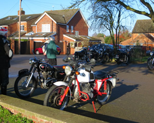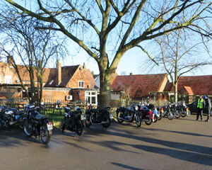 On a cold but dry day 17 riders assembled at the St. Nicholas Church car park in Kenilworth for a 27 mile route taking in the roads around Warwickshire and going from Kenilworth to Leek Wootton, Blackdown, Cubbington, Offchurch, Bascote, Marton and on to the Green Man at Long Itchinton where landlady Sharon was waiting with a warm welcome and sandwiches for those that wanted them.