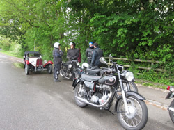 On an unseasonal, very cold and wet Sunday morning, 10 hardy riders met up at the start on a variety of machines ranging from Derek Morris’s 1920’s Matchless to Martyn Roberts 1970’s BMW and Harry and Fran Wiles out for the first time on a section event in their 1934 BSA Trike. A challenging route was set by the organisers in that it took in many very narrow lanes with mud heaped up in the middle, not too bad for the solos as they could ride to the side of it but a little daunting for a three wheeler as the rear wheel kept going where it wanted to.