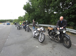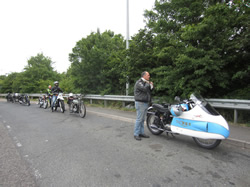 Following some very hot days the weathermen issued a yellow warning for thunderstorms for the Sunday 5th July, despite this twelve machines turned up at the start, the organiser, Mick Jaggard, arrived on a bike but did not do the run due to a prior commitment so eleven riders set off.