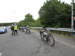 The bikes ranged from a 1920 Triumph ridden by David Payne to Ted Robinson’s 1980 Honda with four other vintage machines on display, a 1927 AJS ridden by Simon Dudfield, Derek Morris on his 1928 Matchless, Frank Parker on his 1929 Panther and myself on a 1929 Sunbeam, Steve Bradwick was on his very distinctive BSA with blue and white dustbin fairing.