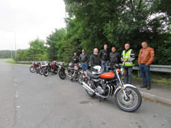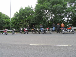 Following a week of inclement weather the weatherman said that we should not expect rain until around 11.00am, when I got to the start it was overcast but the clouds looked high in the sky, I knew of a number of members who could not attend but was still rather surprised by the low turnout, 8 bikes and riders signed on from Derek Morris on his 1928 Matchless to Phil Roberts on his 1980 250cc Suzuki. I set them off at 7.00am and waited ten minutes to see if there were any latecomers before I set off.