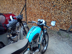 Among the assembled motorcycles at the Yew Tree Farm Tea rooms were two Vintage AJS's, two Triumph's, a Norton, a Royal Enfield, a Honda and a Morgan. Their riders and passengers all came to sample the tea, coffee and assorted cakes on offer at this delightful location and make the best of the fair weather. This lovely afternoon was enjoyed by us all.